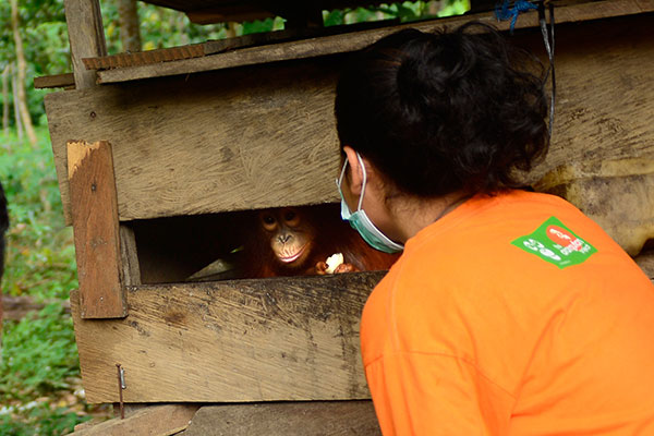 After the orangutans have completed their quarantine period, they can take part in forest school where they develop the skills they need for release into the forest. Young orangutans would normally spend many years learning these skills from their mothers in the forest, so this rehabilitation journey is a slow process.