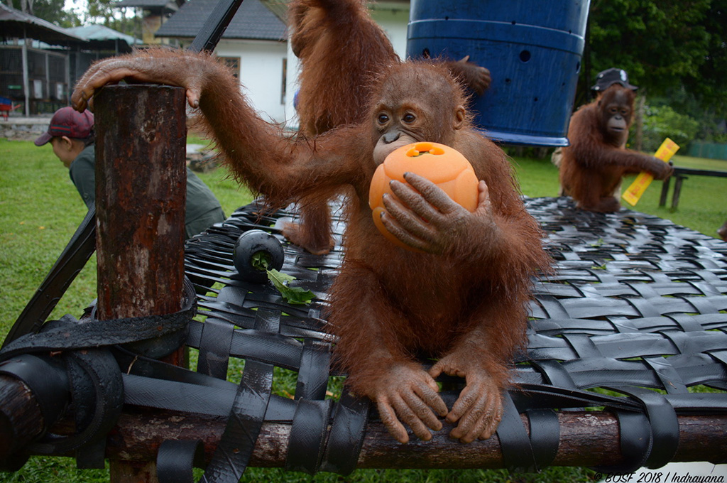 Facilities onsite include a veterinary clinic, quarantine facilities, an infant nursery and large socialisation cages. Many young orangutans that arrive at the centre have been kept illegally as pets in deplorable conditions. Orangutans are given a full medical check upon arrival and treated for any illnesses and parasites. Many confiscated orangutans are very young and require regular milk feeds. These youngsters have full time carers during the day and night so they receive the care that they would have had from their own mothers. New arrivals undergo a quarantine period before being introduced to other compatible orangutans. Once they are with other orangutans, they can begin forming social bonds and learn skills from each other.