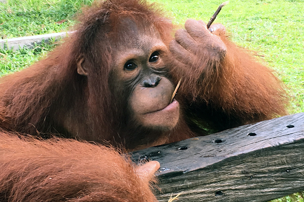 There is a forest area where young orangutans can visit with the staff to develop their forest skills during their rehabilitation program. These skills include nest building, traveling in the canopy and being able to identify and access various forest food sources including fruits, leaves, bark, cambium and insects. Young orangutans spend many years learning these skills from their mother in the forest, so the rehabilitation journey is a slow process. Orangutans develop at different rates depending on their age, temperament and how long they spent with their mother in the forest.