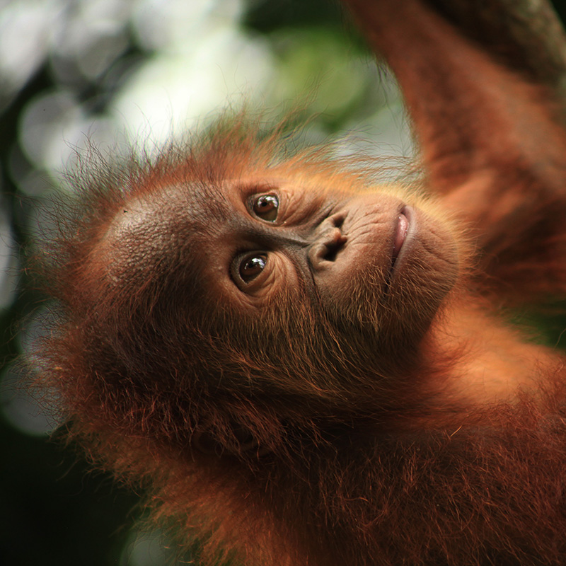 Sudin’s favourite foods include grapes, sour fruits, and green beans. Since his rescue, Sudin’s confidence has grown, and his cheeky nature now shines through. He loves to play outside his enclosure in the nearby trees with Siti. He has even started to try and build a basic nest by folding over leaves and twigs. Sudin and Siti will spend the next few years at the Open Orangutan Sanctuary in the Bukit Tigapuluh Ecosystem where they will join Jungle School and begin their rehabilitation journey.
