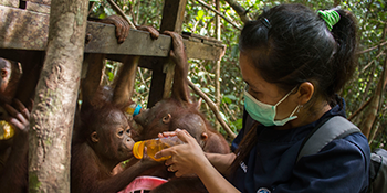This gift provides fresh, nutritious food for orangutans in our rescue centres, keeping them healthy and well-fed! The food you provide will replicate more than 200 plant species found in their surrounding forest, helping ex-captive, rehabilitated orangutans recognise the foods they need to stay strong and healthy when they make it back to the jungle.