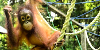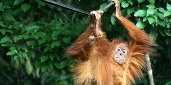 Give 100 metres of rubber rope so young orangutans can learn to swing and climb!