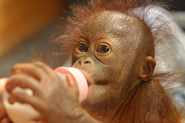 COP opened an orangutan rescue and rehabilitation centre called ‘COP Borneo’ in April 2015. It is located in the Labanan research forest in East Kalimantan and has the status of Special Designated Purpose Forest. COP Borneo has a range of facilities including a block of quarantine cages, socialisation cages and one small medical clinic/baby house. It also has facilities for COP staff including a dormitory for staff that stay overnight to care for sick or infant orangutans. COP has numerous teams in the field that investigate and confiscate illegally held captive orangutans. Most of these are young orphan orangutans whose mothers have been brutally killed. Once rescued from often squalid conditions, these vulnerable orphans will undergo a full medical check and quarantine period at COP Borneo before being introduced to other orangutans at the centre. Many confiscated orangutans are very young and require regular milk feeds. These youngsters have full time carers during the day and night so they receive the care that they would have had from their own mothers.