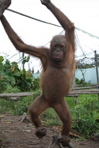 She enjoys the space in the back transit area and her friendship with Cindy is still strong and one of the longest lasting ones we have seen amongst our younger orangutans. Since she has been in captivity as good as all her life, she tends to spend more time on the ground that climbing up high in the ropes and on the platforms. This is a continuously challenge for us and our baby sitters to encourage the babies to forage and play up high as they would in the forest with their mothers. Fortunately our new centre is taking form fast and the fenced in forest area for the younger orangutans will provide them with meter high trees with new opportunities, a more natural environment and a chance to behave like the wild animals that they are.