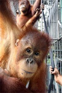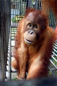 Ugo has developed into a handsome male but has developed a very cheeky attitude! After graduating from a smaller socialisation cage, he is now in the largest of socialisation cages with 15 other orangutan friends.