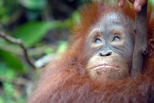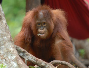 Her weight has increased, because she loves to eat. Sometimes she also steals the babysitter's food! She still has not mastered the nest-building skill, but she is now able to build crude nests, though she still needs to learn more to make them comfortable. She enjoys the fruit that she gets at the forest. Meki is not dominant and is quite well behaved and bonds quickly with her new friends and environment. Meki is a good-natured orangutan, well, most of the time anyway!