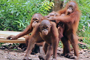 Monti has adjusted well to the change and remains independent. She still has a calm demeanour while with the others in the sleeping cage, but when going out into the forest, she likes to push the boundaries a little. When some of her friends choose to walk, she takes to the trees and makes her way to the feeding platform in the forest at her own pace. We are confident that she will continue to practice the skills needed to survive as a wild orangutan in the future.