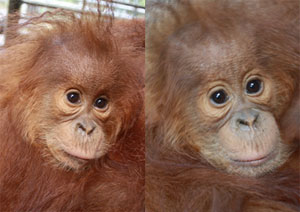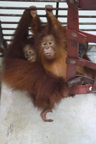 Although born in the quarantine facility and therefore living inside a cage since birth, Ganteng and Ginting are growing up quite well, being lovingly cared for by their mother. The twins have no medical issues and are looking health and have beautiful shiny hair.