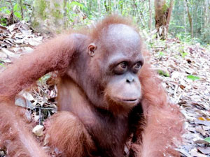 This behavior is not the norm, but some wild orangutans – especially adult males – are known for spending much time on the forest floor. Otok finds plenty of food on the forest floor and builds adequate sleeping nests there. If he continues to improve on his forest skills from the ground, this might work just fine for him as a wild adult male orangutan!