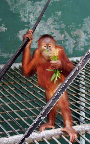 Wenda is still in a socialisation cage with another eight orangutans - Ugo Blanco, Miky, Frens, Manohara, Brokoly, Ontong Bolang, Krisna Desky and Ego.