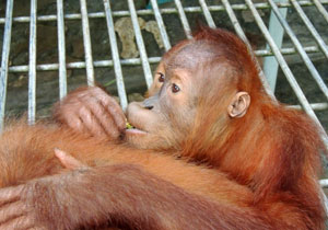 Wenda is calm and friendly towards the other orangutans in her socialisation cage and is becoming more confident in interacting with older orangutans within the cage - like Manohara and she initiates contact with new comers into her group. She doesn't interact with keepers that much anymore and prefers to interact within her orangutan group. She still prefers sleeping in a hammock instead of a leaf nest. During the hot weather, Wenda is often seen playing with water from water tap in the cage. Previously Wenda had a stereotype behavior - she would repeatedly go around and around the cage following the same route. Luckily this behavior stopped in April. Lately she is very close with Brokoly and Hugo, but often fight with Ego and Ontong Bolang. Wenda had a fall in August 2012, which caused her to loose of one of her incisors, although this did not affect her eating.