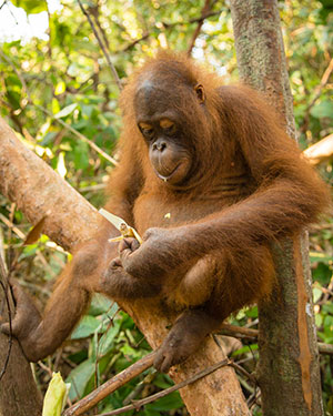 Bunga is also extremely intelligent and friendly to all the other orangutans, she has loads of friends including Desi, Mac, Laskmi and Johnny. She is developing very well and showing great progress with her forest skills, she spends a lot of her time high in the trees but she is still working on her nest building skills. Bunga has great potential for release in the future once her forest skills such as nest building are fully developed.