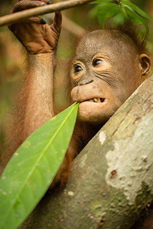 Rahayu loves her new home in the new centre and relishes her days spent in jungle school, climbing and swinging from the trees. She has good climbing skills but has not yet built a nest, so she still needs to develop these skills. She has no favourite food and will eat forest fruits and anything that her keepers offer her!