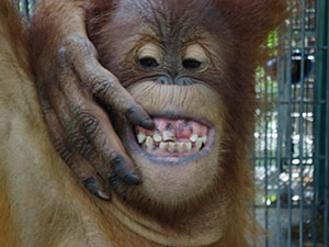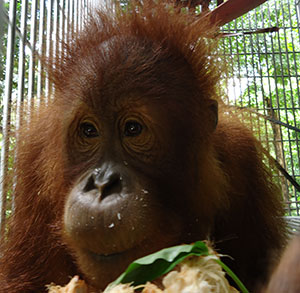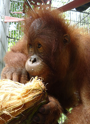 Ugo Blanco now weighs approximately 22kg. He has begun to get some of his adult teeth. Ugo has a very good appetite but he can be a bit lazy and usually avoids fruits which require a bit of effort to eat such as jackfruit and coconuts. However he is more than happy to steal these items off other orangutans once they have opened them.