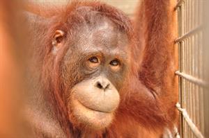 Carmen is living in an enclosure with her friends Bella, Nanda and Suma. Carmen is closer to Nanda because she is a gentle orangutan whilst Bella and Suma can be more aggressive. Carmen is a gentle orangutan herself and is never aggressive to other orangutans.