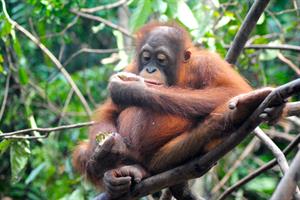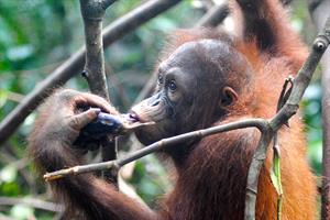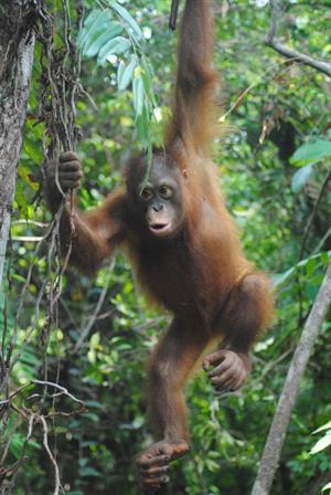 She can be quite independent and will disappear from the group to spend time on her own doing what an orangutan should do including foraging for her own food and building nests. She also mixes well with all the other orangutans in the group, especially Bandut who she loves to wrestle with.