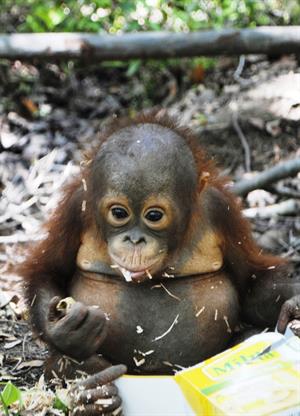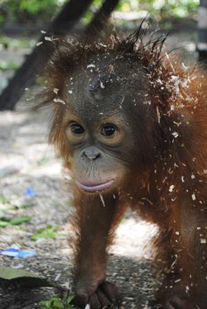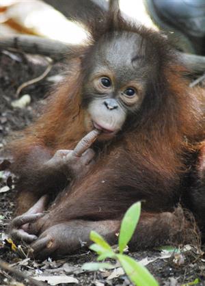 Rickina is a strong and healthy little orangutan, now weighing 6kg. She is becoming more independent of Rocky, however they will still cling to each other if they are feeling anxious. She also enjoys the company of Onyo and they often play together.