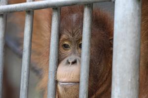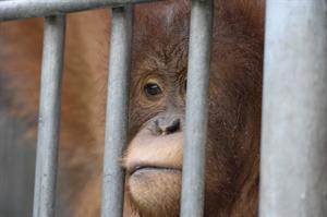 Ugo Blanco is currently housed in a socialisation cage with orangutans named Suro, Rachmad, Krisna, Balaram, Jemmy, Marvel, Okti, Combur, Kluet and Meisin. Ugo is not the biggest orangutan in this group however he is the dominant orangutan in the group! Not only does Ugo snatch food from his fellow orangutans, he also tries to take food from the keepers.
