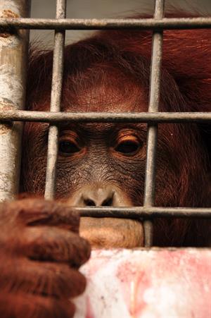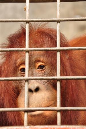 Bulan is still best friends with Nanga. They always eat together and don’t fight over food. Bulan is a sweet and gentle orangutan. She is more active than Nanga. Bulan likes to climb in the cage and swing on the high rope while Nanga sits on the floor and watches Bulan play.