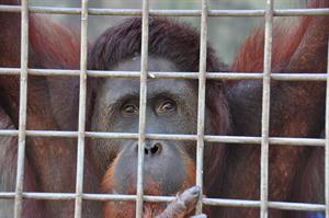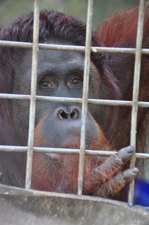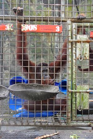 Carlos is a very healthy and handsome male orangutan. He has now moved to the acclimatisation cage. Carlos is still the dominant orangutan even amongst the new group, especially when it comes to taking food from the technicians. The other orangutans are wary of Carlos and the technicians need to ensure that all the orangutans receive enough food. Carlos is very good friends with an orangutan named Paku. He is also a dominant orangutan and Carlos and Paku don’t fight over things.