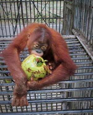 This is probably due to the competition with the other orangutans in his group. His favourite foods are durian and Cempedak. Chocolate has started to naturally wean himself off the milk offered every day. This is a positive step in his preparation for release back to the wild.