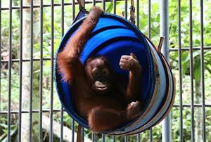 Chocolate interacts really well with the younger orangutans in his socilaisation block. He is particularly close with a young female named Seroja. They spend a lot of time together and sleep in the same hammock during the night. Chocolate has also begun to build nests for his night time sleep and shares the nest with Seroja. Chocolate has been seen to be quite brave by interacting in a positive manner with the larger orangutans in the socialisation block next door. One of his favourite activities is playing with his friends under the water tap during the day and getting entirely wet!