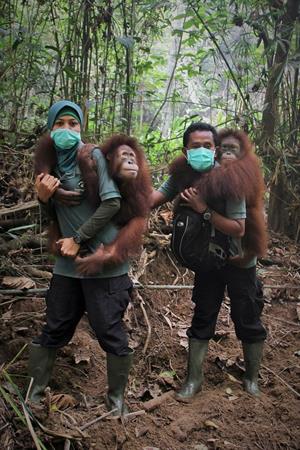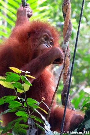 Dora is a quick climber and is travelling higher into the canopy now. When it is time for Dora to return to her night cage she will rip off some young leaves to take with her so she can snack on them while her carer carries her back to the night cage. Recently, Dora refused to come down to her carer at the end of the day and chose to stay overnight in her nest in the forest. This was very positive that Dora wanted to stay in the forest. The next morning her carer went to collect her at dawn to take her back to the cage. Dora ate a large breakfast and then slept till 4pm in the cage! Everyone was quite worried about her- obviously she was exhausted from her new experience.
