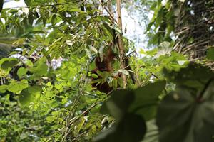 Gokong will also eat some of the leaves when he is climbing in the trees. Gokong does not make nests yet and rarely uses the leaves for cushioning or bedding but he is still very young and has time to develop this important skill.
