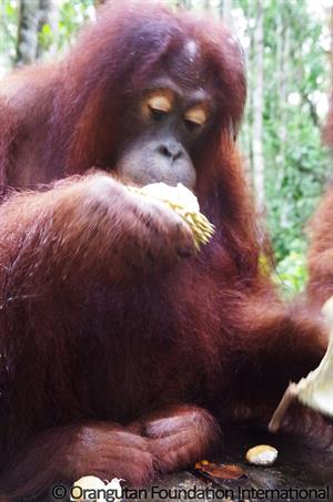 Marwar is an adolescent female who is nearly ready for release back into the wild. She is adept at climbing and moving through the trees and is an excellent nest maker. She enjoys finding termite nests and is quick enough to find the nest, pull it out of the ground, and be up in the trees before her caregivers can get close to her. She enjoys being in the forest so much that when she is released she often stays up in the trees for three days at a time. While this habit of staying up in the trees is an excellent indicator that Marwar will soon be ready for release back into the wild, it is a challenge for her caregivers, who feel a great responsibility for her well being. When she does spend the night in the forest her caregivers also stay out until after dark to be sure she is sleeping safely in her nest. They then go out before dawn the next morning to check on her again.