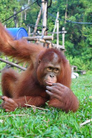 Meki is a very active and healthy orangutan, weighing in at 23kg. She greatly enjoys going to forest school and plays energetically with orangutans in all of the different forest school classes.