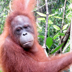 Sometimes she will lie on a tree branch, lazily munching on a clump of berries and staring off into the forest canopy. As she makes her way slowly and thoughtfully through the forest, Natalia prefers to move by herself and stay hidden. Indeed, sometimes she sneaks away covertly and caregivers have difficulty locating her when it is time to go back to the sleeping enclosures for a meal. When she comes across her orangutan peers, she is always up for taking a few minutes for a playful wrestling match. Natalia’s dark, unblemished face reflects a soul that is at peace in the forest. Her forest skills have developed greatly over the years and it is hoped that she can find that peace as a wild orangutan in the near future!