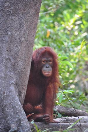 Rosi remains very close with a female orangutan named Nila. Nila is very adventurous and likes to stay in the forest. Rosi is more quiet and gentle and is content to return to her night cage, guided by the baby sitters. Sometimes Rosi plays quite far from the baby sitters but she always returns to her cage.