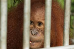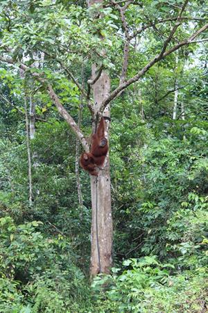 The release did not work out entirely as hoped. All three orangutans were released at the same time. Ganteng did not take well to the forest environment and Gober struggled in the trees with two infants to watch out for. It was not long before Ganteng was left behind because he did not follow his mother and sister into the forest.