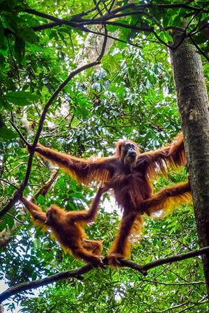 Gober and Ginting continued to cope well in the forest after their release. They travel well in the canopy and developed a home territory of approximately 2km2. Ginting follows her mother’s lead and will eat a variety of forest food including fruits and leaves. They sleep in the same nest high in the canopy.