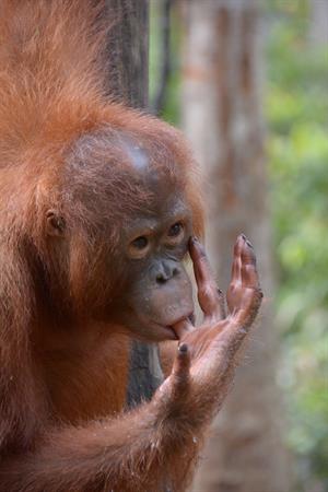 When Meki is tired from exploring the forest, she will usually build a nest and rest. She is definitely becoming more independent and has started to enjoy over night stays in the forest, sleeping in a canopy nest.