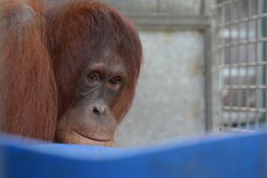 She explores all of the different enrichment toys and puzzles but she often struggles to figure them out fully. However the activities keep her mentally and physically active. Her closest orangutan friend is still Nanga.
