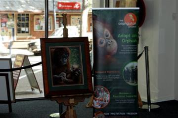 It has been a busy few months in South Australia. Starting off when I received a phone call from Tabitha Eades a very talented artist from Littlehampton in the Adelaide Hills. Tabitha informed me that she had painted a piece called Indelible Bond featuring a mother orangutan holding her baby. She had been displaying this beautiful piece in a local framing store and had been selling raffle tickets to win this painting for an entire month with the idea that the monies raised would be donated to The Orangutan Project and Orangutan Foundation International Australia. By the end of the month she had raised $2400.00 which was divided and presented to myself and Vicki Carter from OFIA at the framing store where we got to see the picture being handed to a very excited raffle winner. The lucky winner and recipient of the painting was Ton Franken who had his eye on the piece from the very beginning and had already chosen where he would be hanging his prize. During the handover we had our photo taken for the local paper. Always an excellent way to get TOP’s name out there. It was such a wonderful day. I would like to take this opportunity not only to thank Tabitha for her kind donation but to commend her on her creative thinking. It is fantastic to see somebody utilizing their strengths and talents to raise funds. It goes to show that fundraising, educating and conservation is such a broad field and I invite everyone to think about your strengths and how you could contribute.