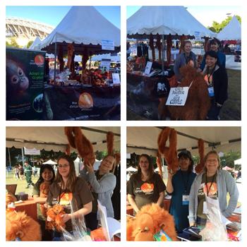 On a sunny Sunday on 17 May, The Orangutan Project volunteers had set up a fundraising stall at the RSPCA Million Paws Walk at Sydney Olympic Park. Surrounded by so many dogs and dog lovers, our stall stood out as it was the only one that didn't have any dog related products. We of course, had Clyde our big orangutan being our crowd draw card as he got lots of cuddles from people and curious unsure looks from dogs. It was an uplifting day as a lot of people who came up to the stall expressed much support for what TOP is trying to achieve. The stall successfully raised $943.