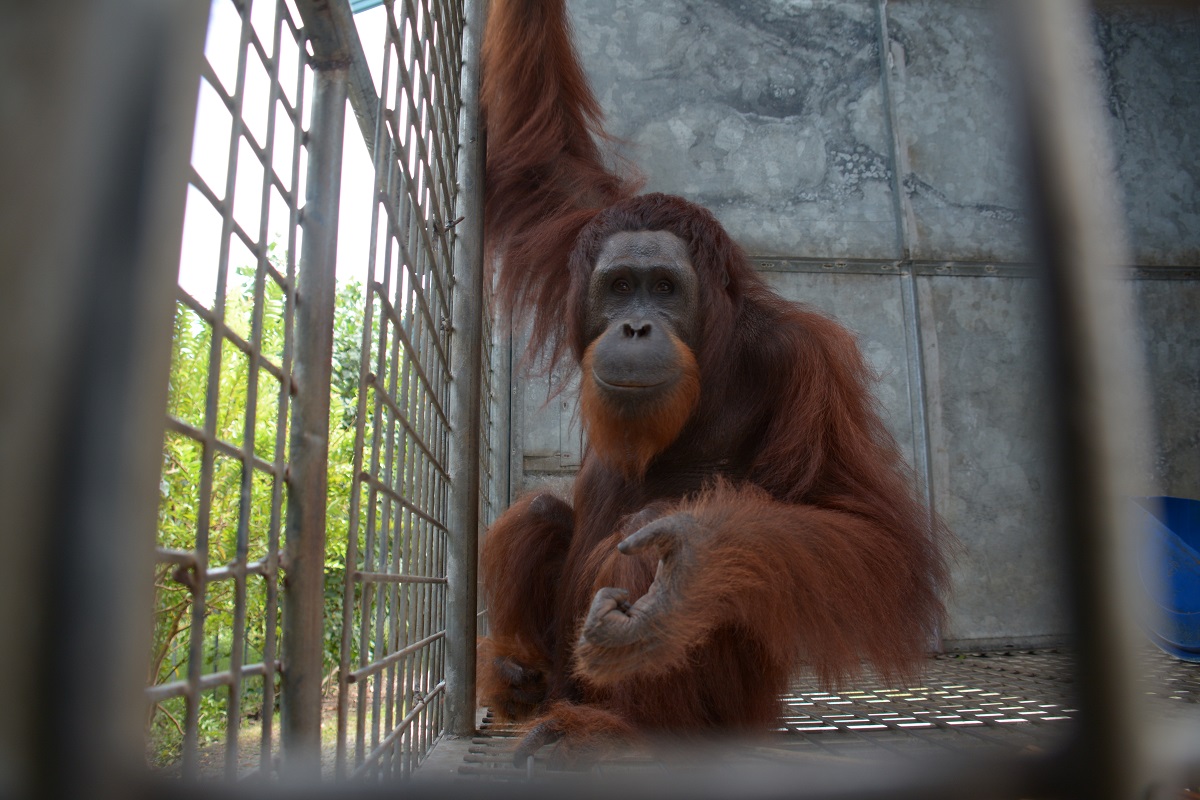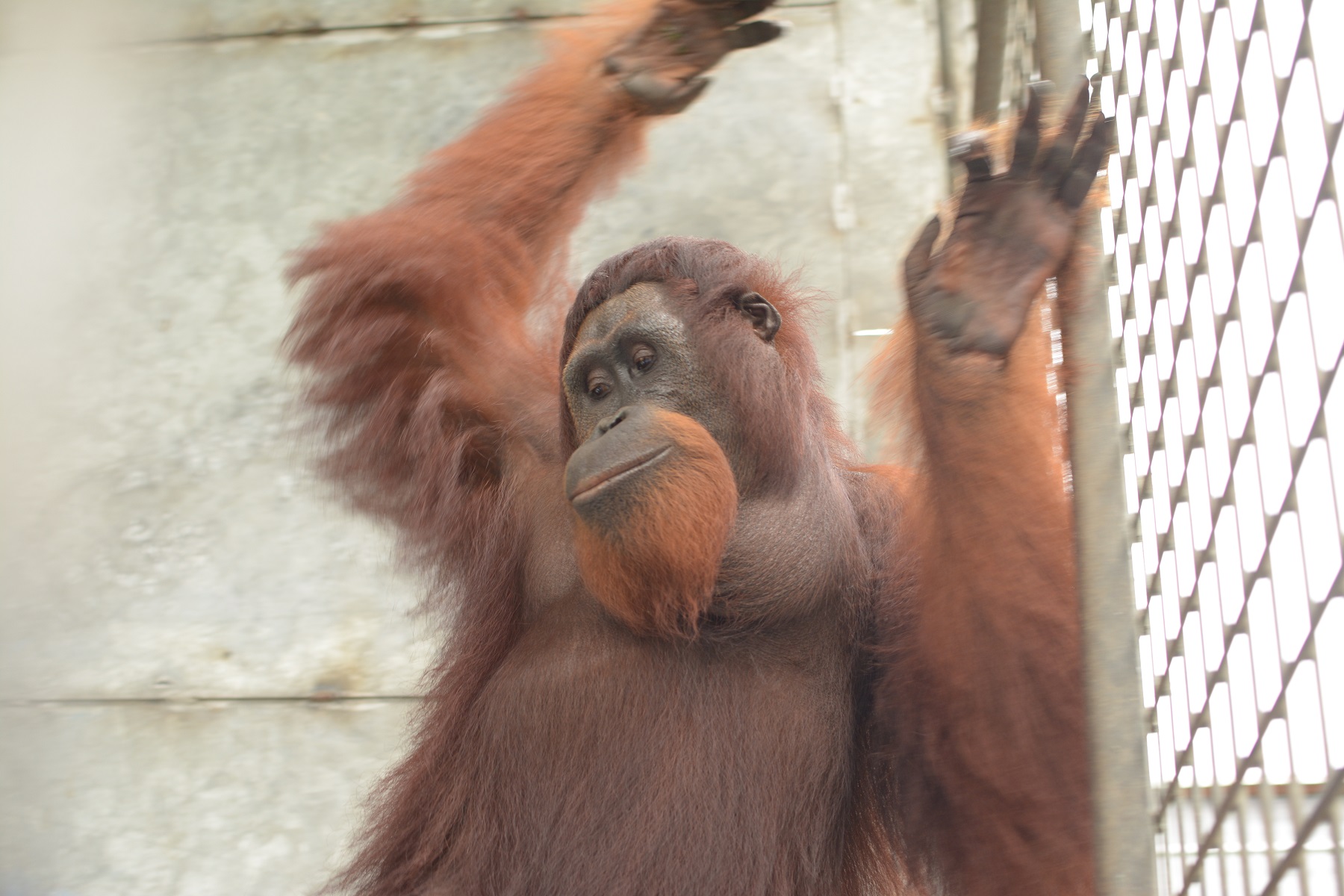 Carlos has become more relaxed and less aggressive towards the technicians when they are feeding the orangutans. Carlos never misses a nap after a day of activity and a full stomach.