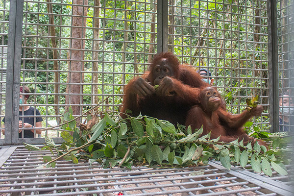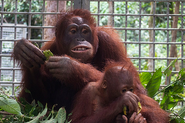 Spending so much time with Pungki, a great nest builder, has improved Monti’s nest building skills considerably, and although always good at this, she has shown great improvement in the last six months. She is a good forager, able to find fresh fruit and often catches insects to eat, so we hope these combined skills will put Monti in good stead when she is, we hope, eventually released back in to the wild.