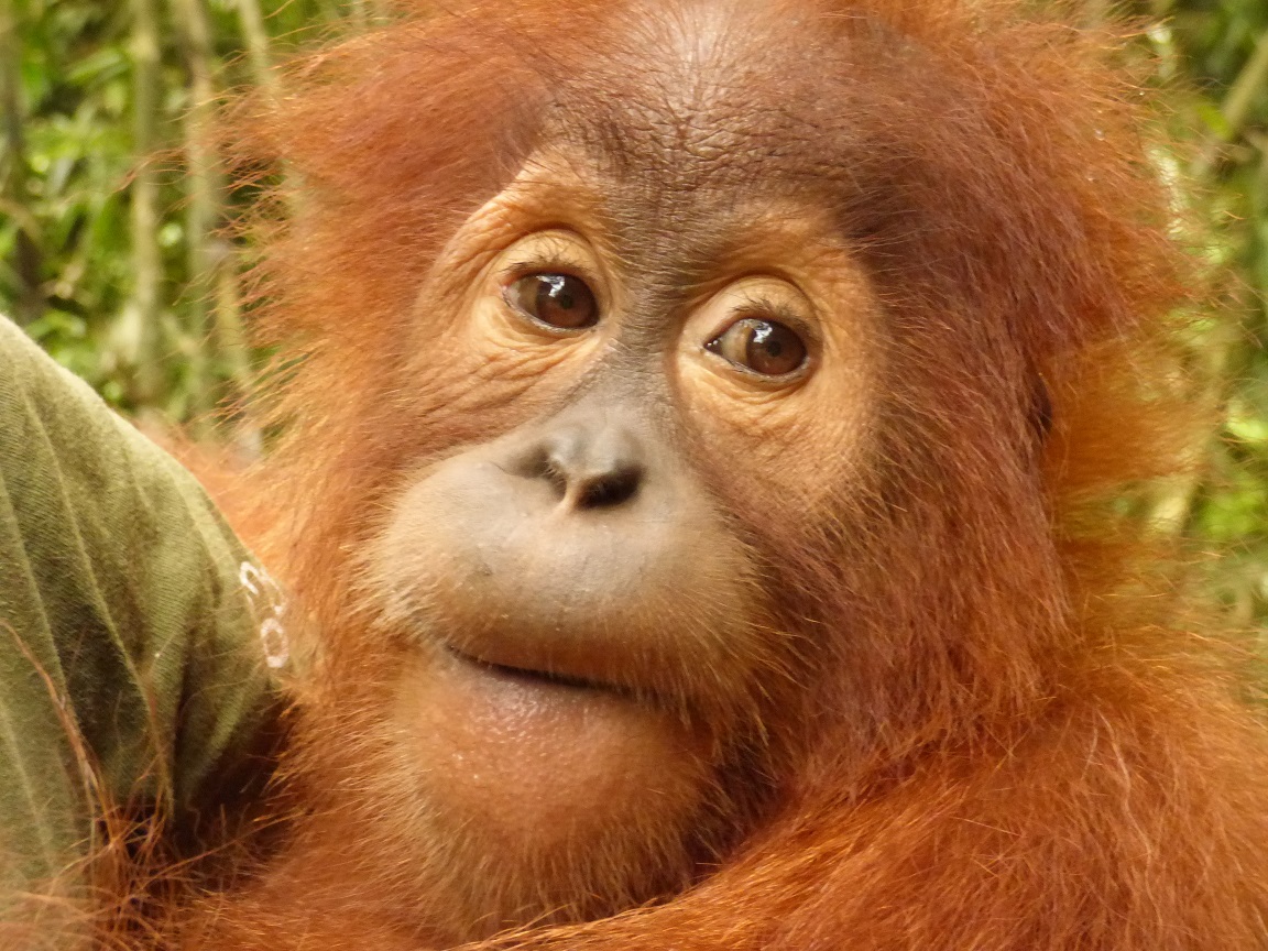 He continues to be very mischievous, and is always seeking attention from his human caregivers, who try to encourage Gokong to become more independent. He has quickly become good friends with Dennis, and the two can often be seen together throwing branches and chasing the other young orangutans. This type of play will help Gokong continue to learn social skills, and we hope that over time he will become less accustomed to being around humans.
