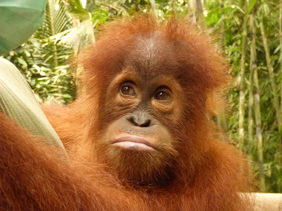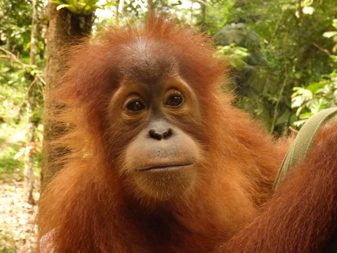 Gokong continues to go outside to forest school each week. However, he has begun causing problems, often coming down from the trees and encouraging the other orangutans to follow him! In the wild, orangutans very rarely come down to the ground; doing so is very unsafe, leading to possible attacks by predators and increasing their exposure to illness from picking up a high parasite load. Although Gokong’s care givers try to discourage this behaviour, Gokong often outsmarts them, causing them to continuously think of new forms of enrichment that encourage him to stay in the trees.