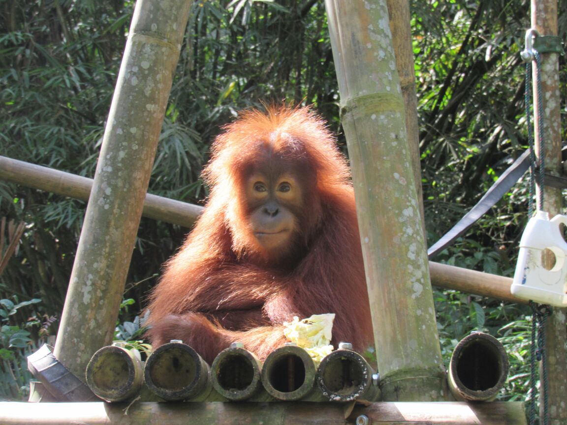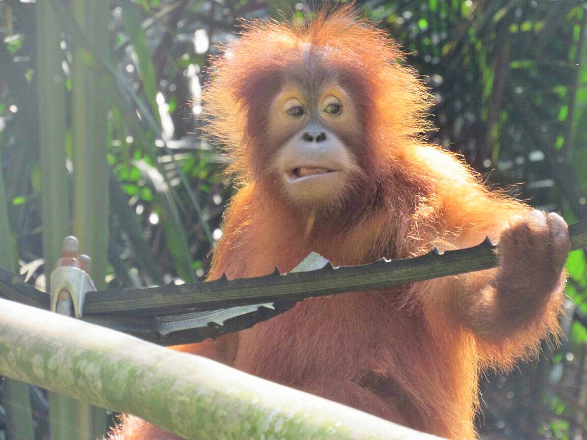 Gokong still plays energetically with the other orangutans in his group. He also enjoys using the various enrichment items and puzzles used to keep the orangutans busy. These include various puzzle feeders that stimulate them to interact with their environment and help train them to secure food in the forest when they are old enough to be reintroduced back to the wild. Gokong is definitely a clever and cheeky orangutan and will hopefully have a bright future ahead when he returns to the jungle.