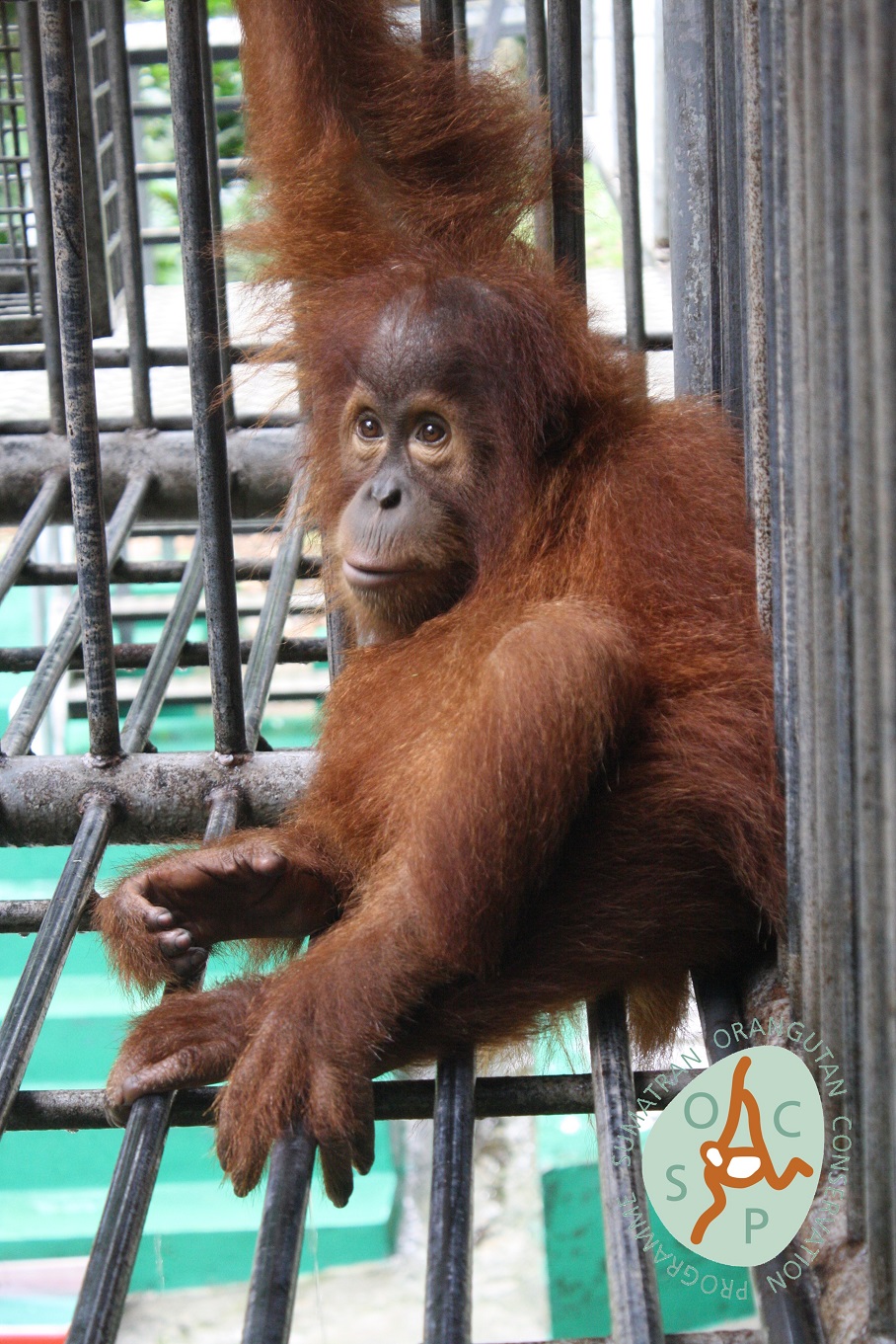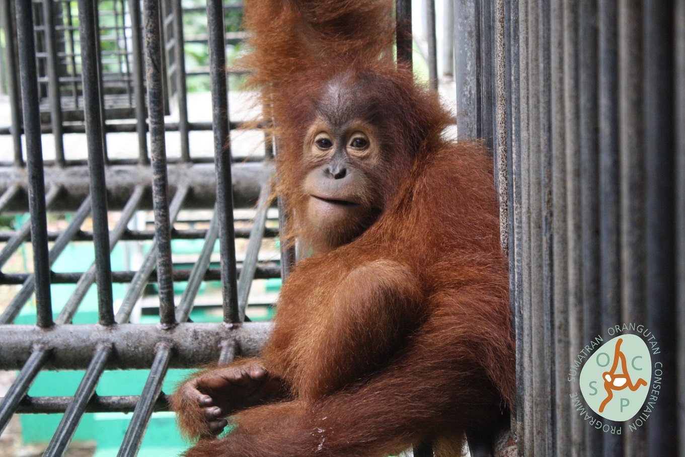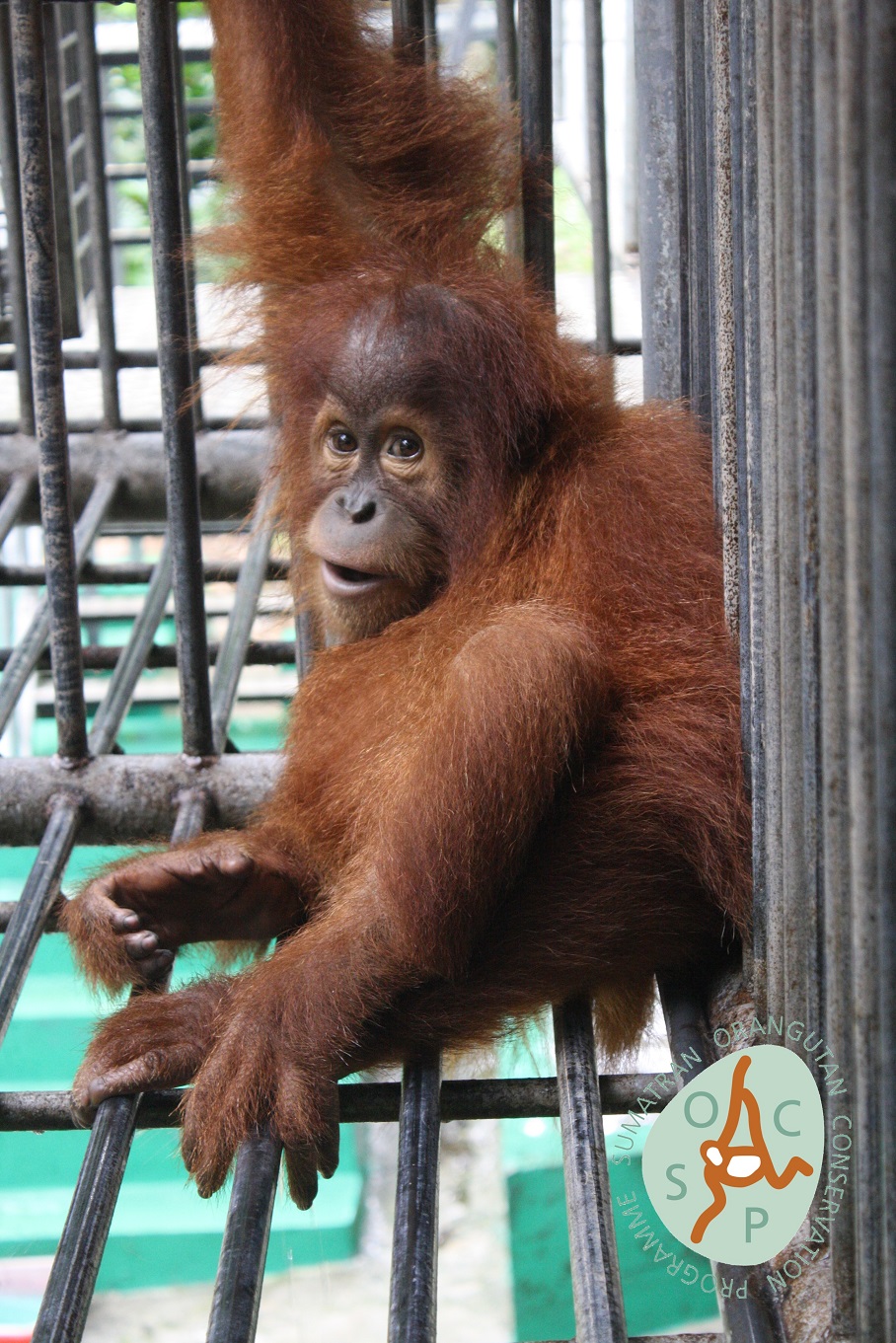 Gokong is going well at the SOCP Orangutan Quarantine Centre in North Sumatra. He is currently housed in one of the larger socialization blocks.