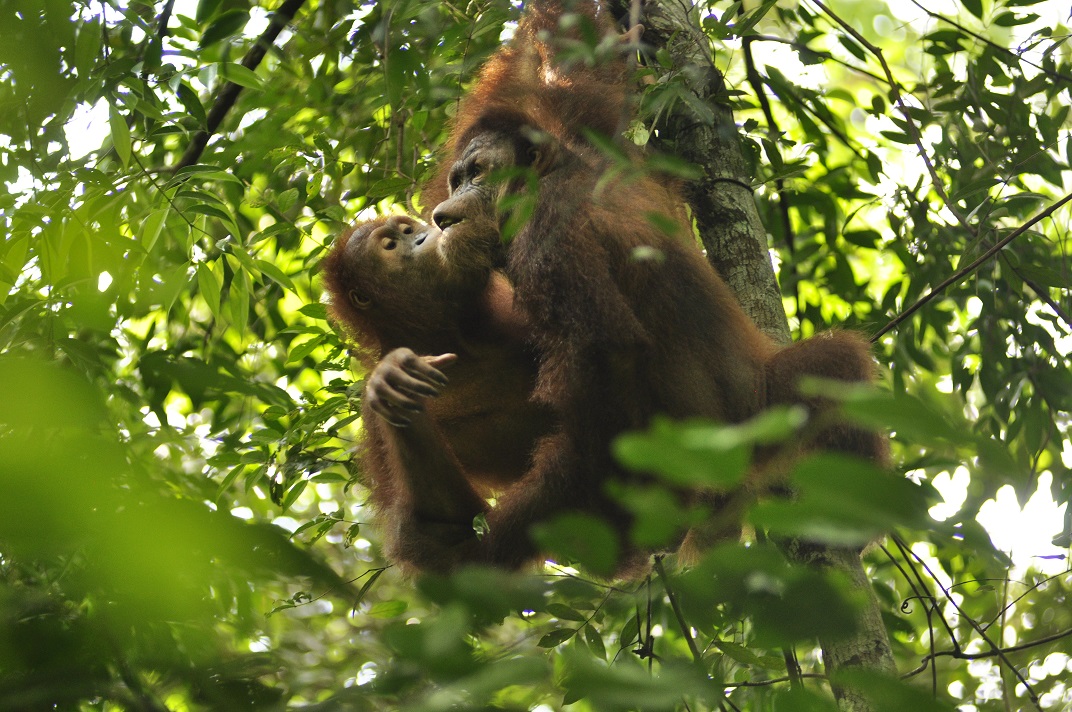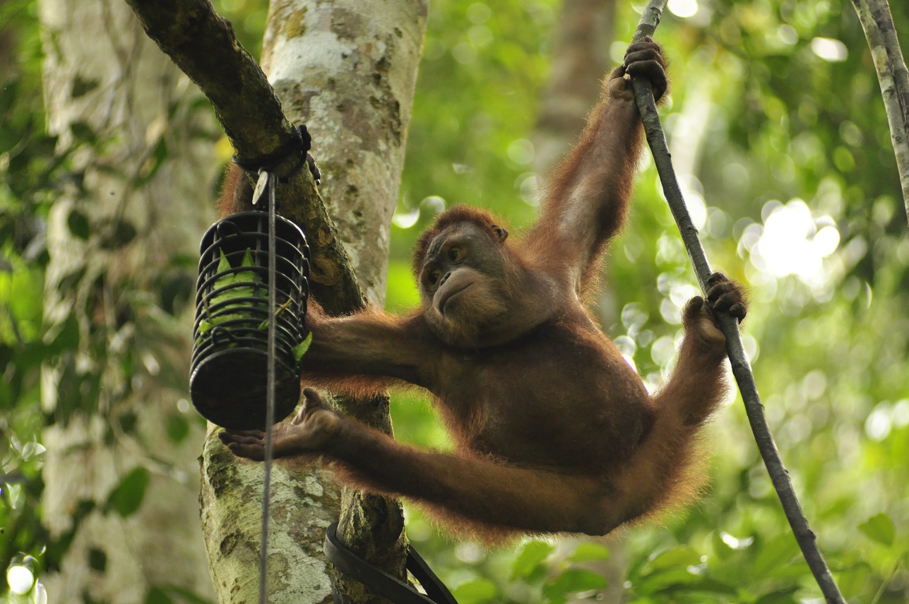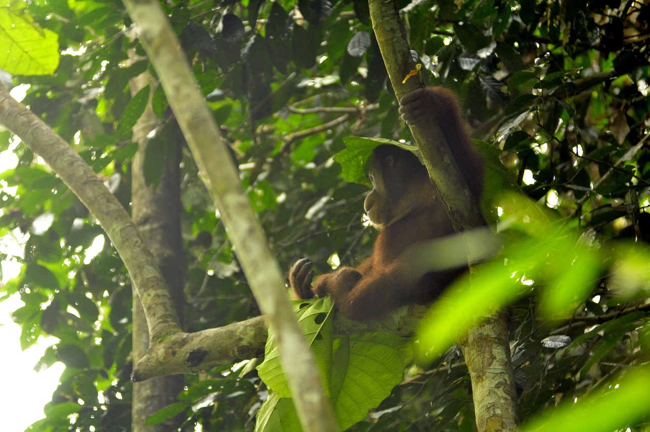 Kedaung has continued to thrive at the Bukit Tigapuluh orangutan release site in Jambi. He regularly goes out on forest school outings and spends most of his time higher than 10m in the canopy.