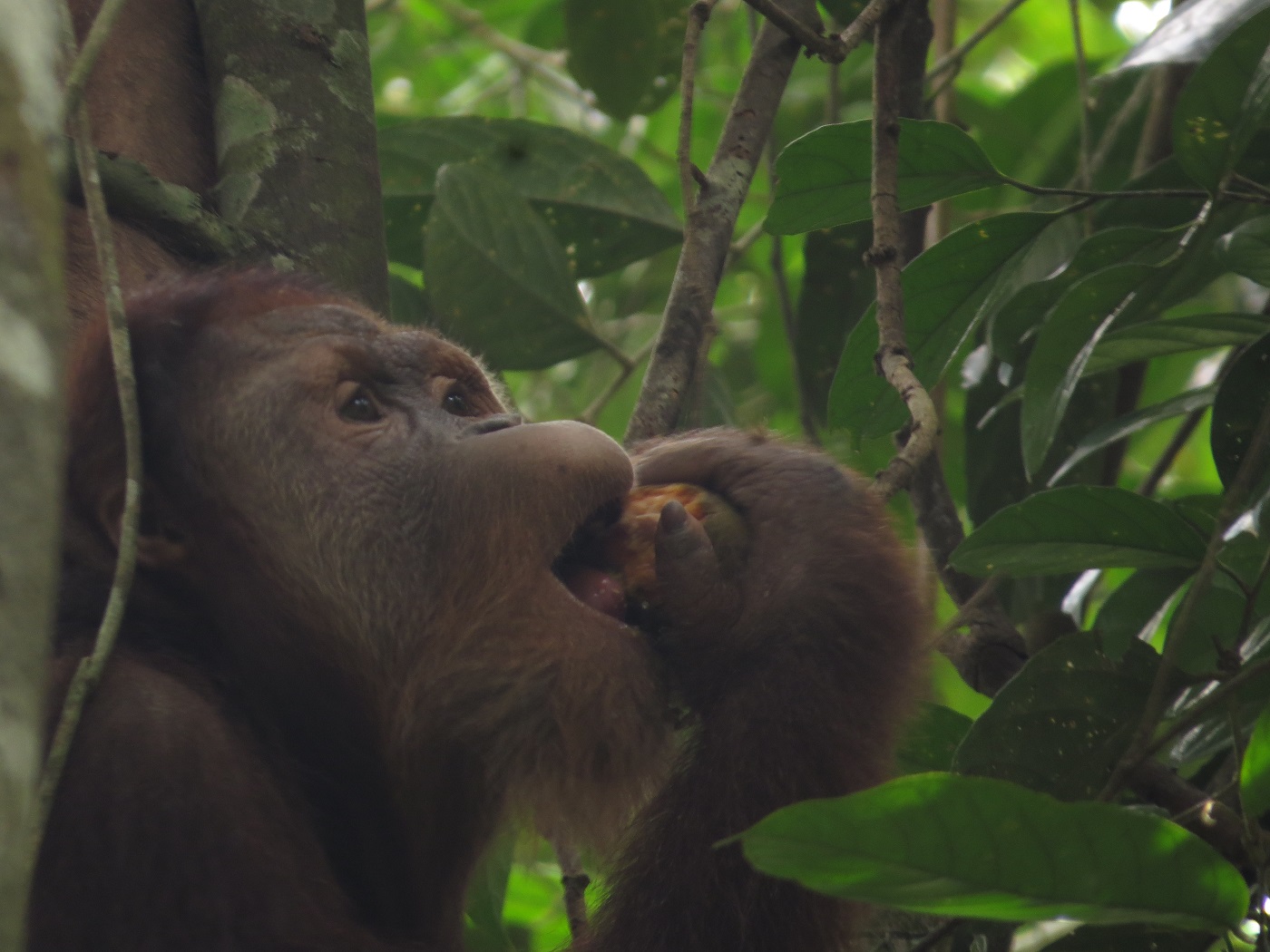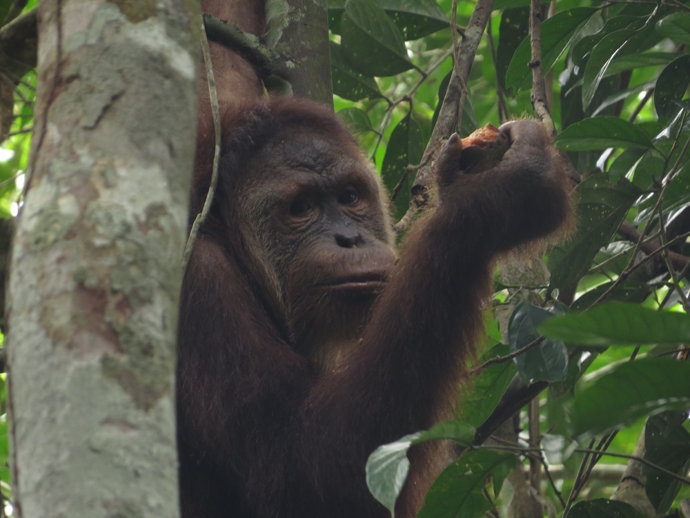 Fruiting season started in June and some of the fruiting trees included durian, bacang, rambutan, terap and jengkol. The availability of these tasty fruits encouraged Kedaung and other orangutans to stay longer in the forest and spend more time on feeding which is excellent.