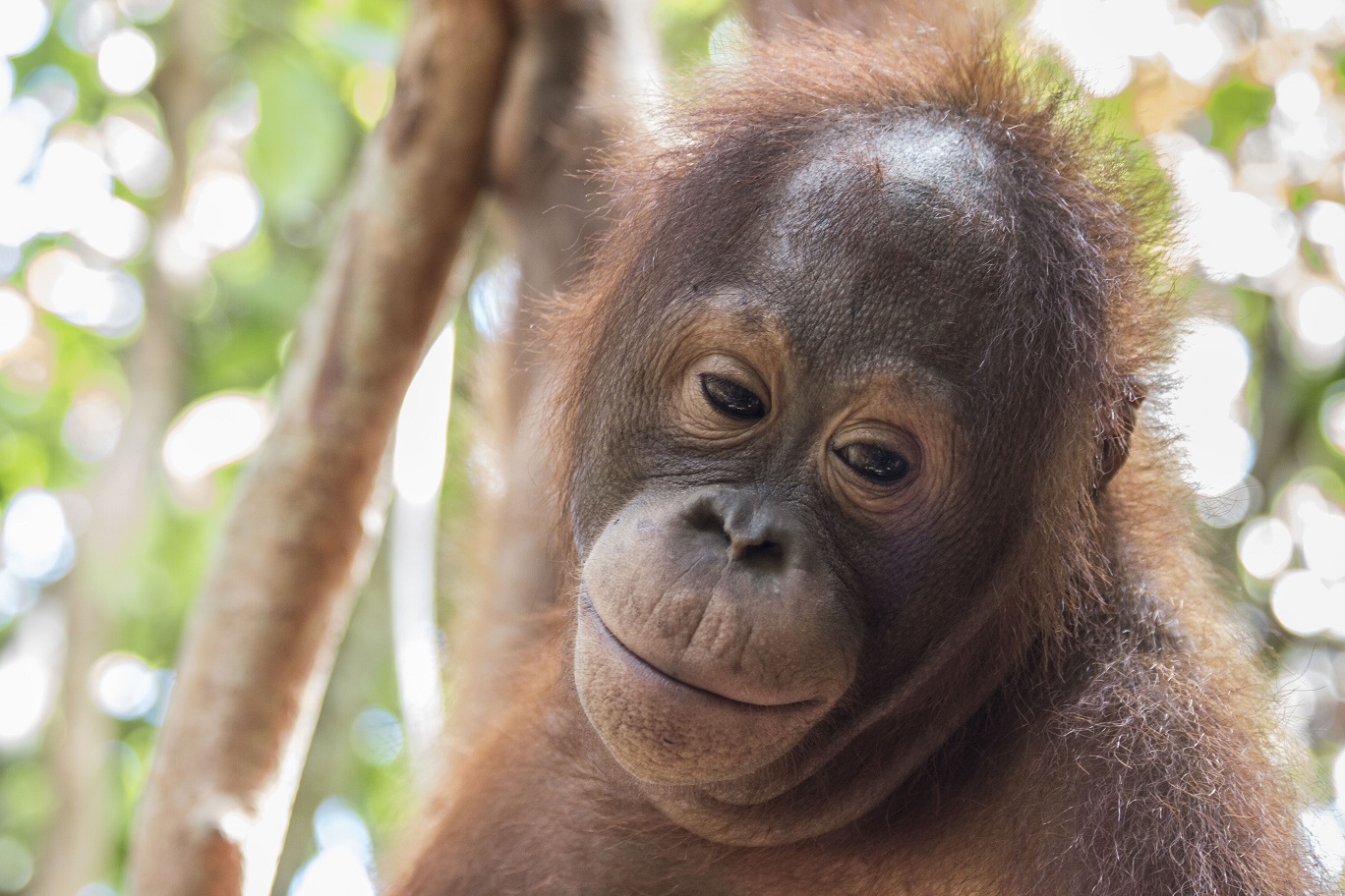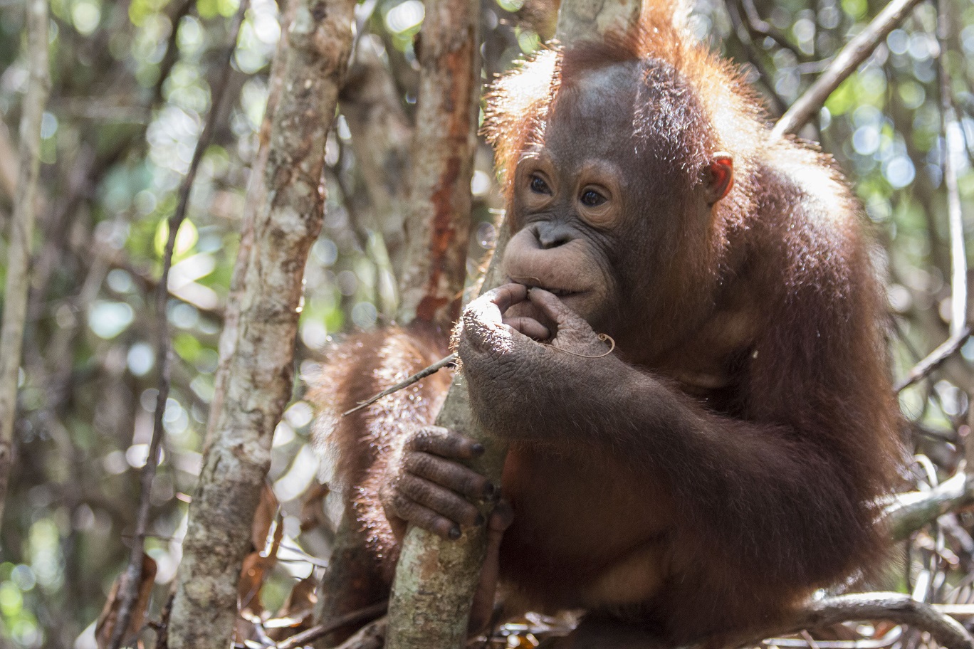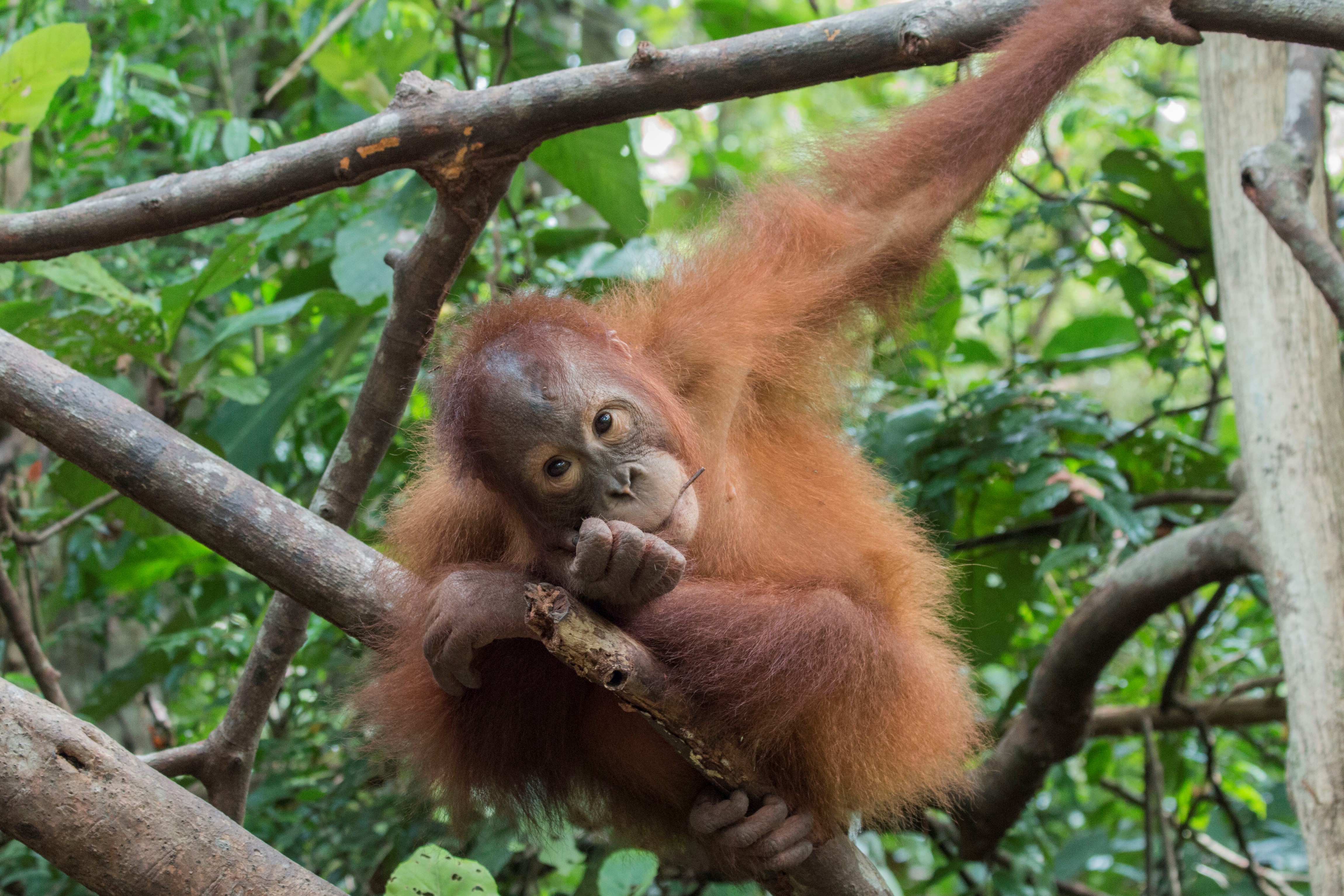 Rickina continues to thrive at the IAR Rescue Centre in Ketapang. Her curiosity is very high and she is always eager to try new things and explore new areas at forest school. She will often take along one of her friends to explore new areas of forest with her. She was recently seen to be very protective of her orangutan friend Pelangi. One day he needed to have a quick medical check in the forest and Rickina became very agitated and showed aggression to the team as they checked on Pelangi. It seemed that Rickina thought he needed her protection!
