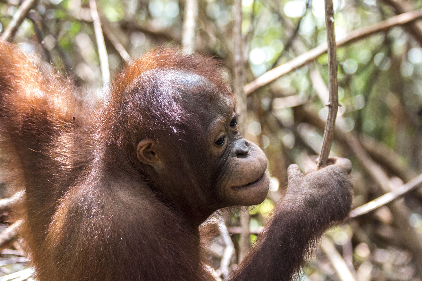 Rocky is now living on Setrum Island at the IAR Rescue Centre in Ketapang. He is very active and adventurous and he plays with lots of different things he finds in the forest.