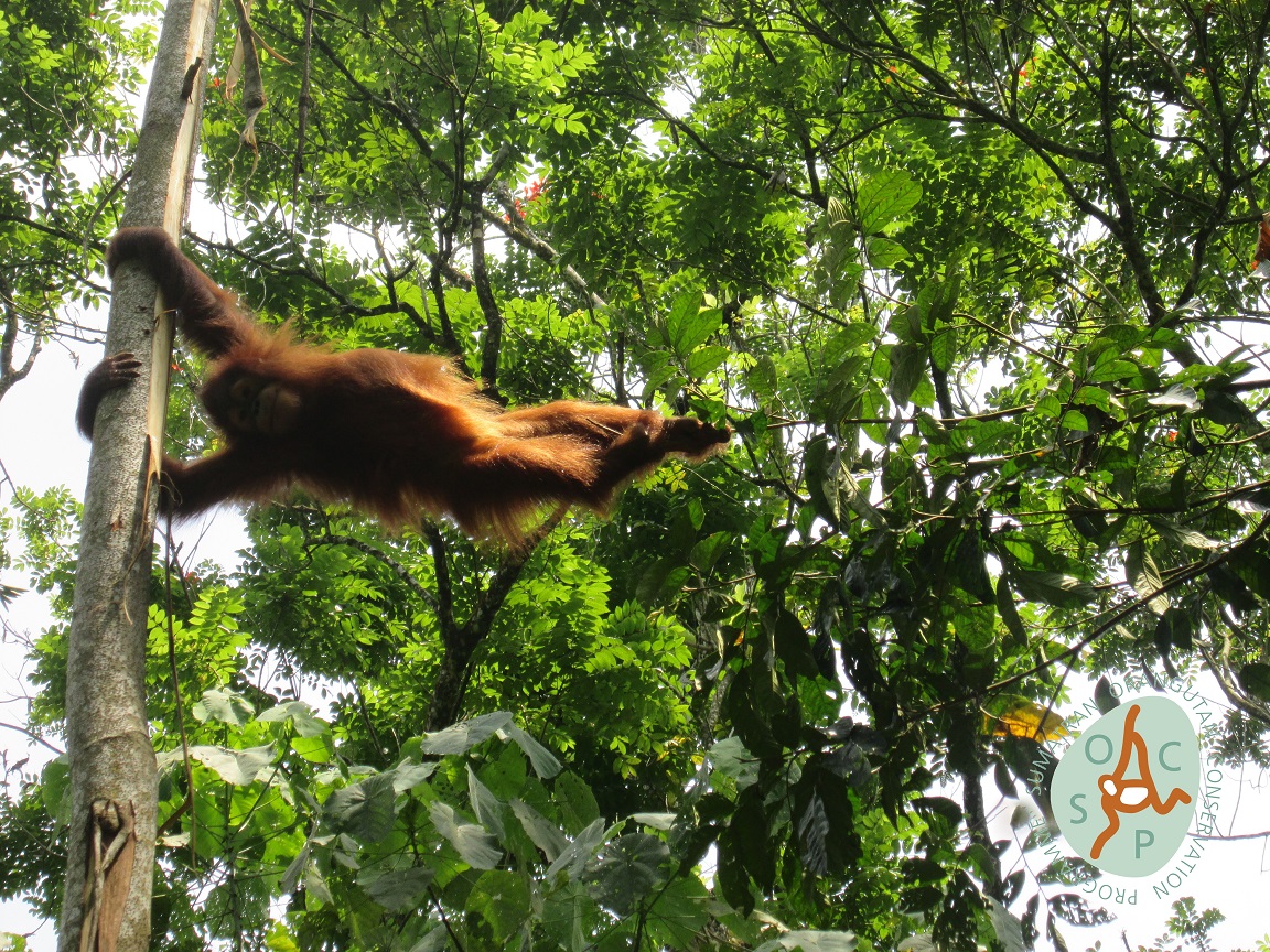 Cece has never fallen to the ground during her forest school outings. Even if Cece has experienced a branch or trunk snapping whilst she is traveling in the canopy, she has always been able to recuperate and grab onto another branch whilst falling. Cece’s keepers have been very encouraged to observe her forest skills and other orangutans will be able to observe and learn from Cece’s activities. It is very interesting to see how different Cece is when she is in a forest environment. When she is in the cage, she appears to be a young, unskilled orangutan who is quite baby-like in her behavior. However, her true nature and ability shine through when up in the canopy where orangutans belong. This emphasizes how important it is that even very young orangutans have the chance to experience time in a natural environment early on in their rehabilitation journey.