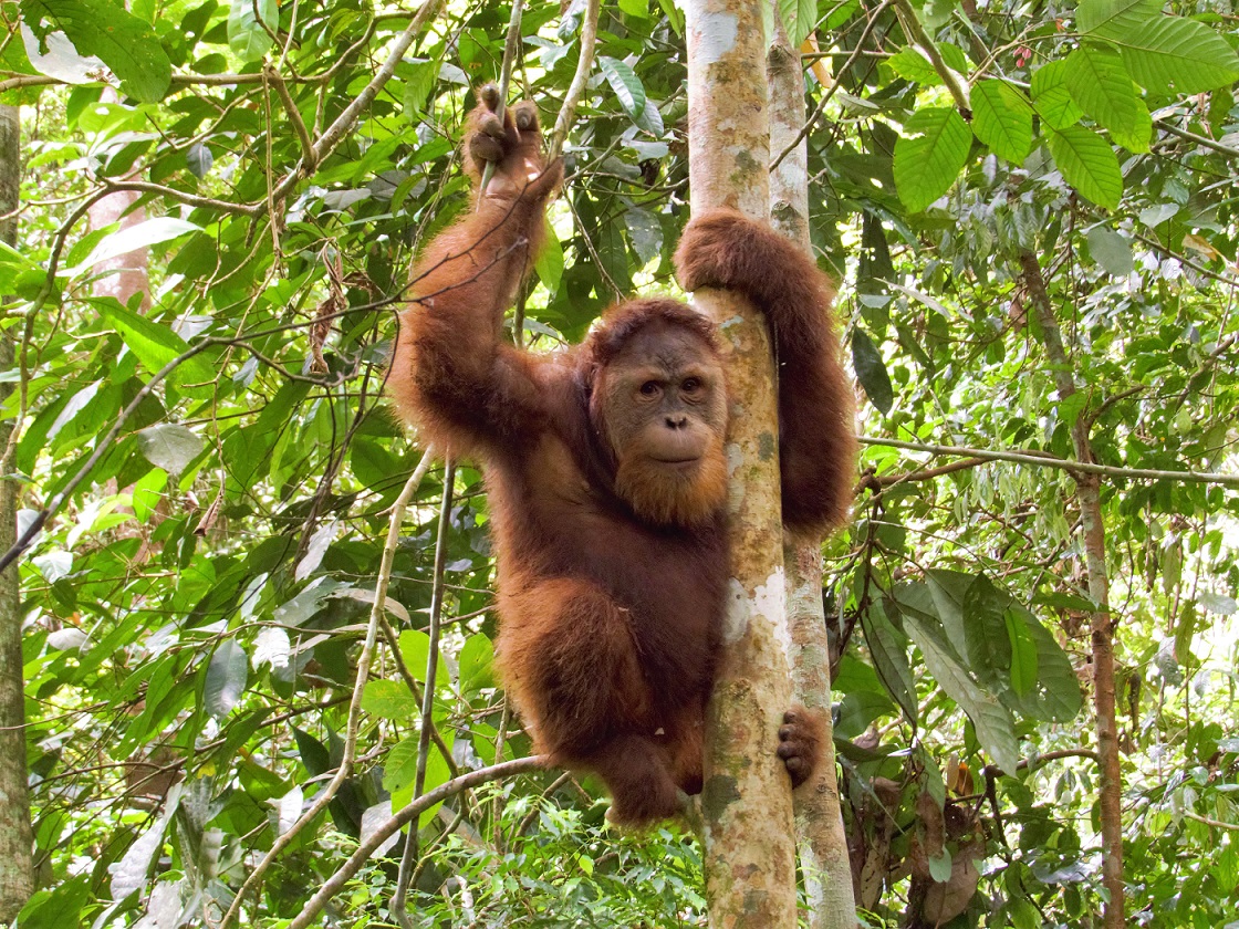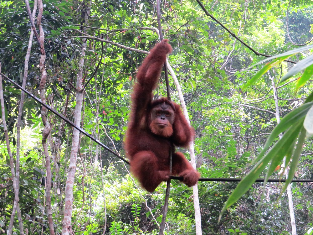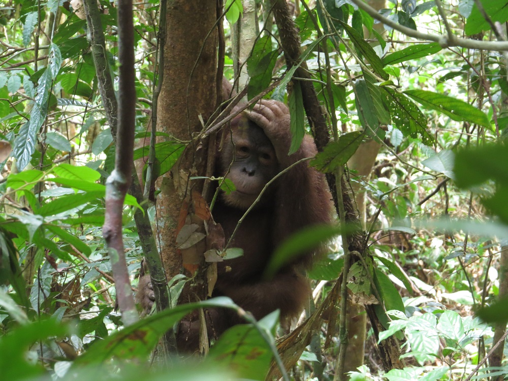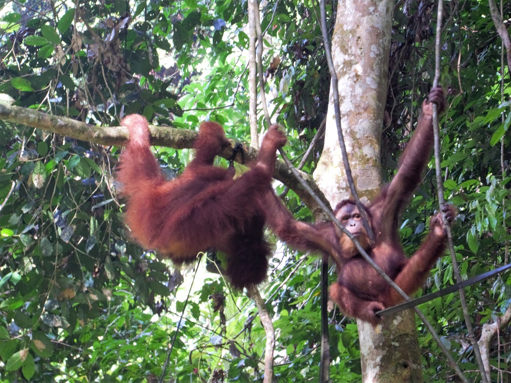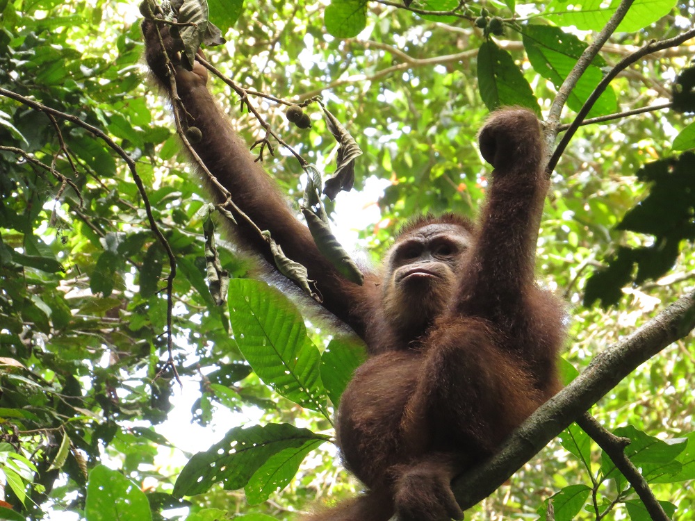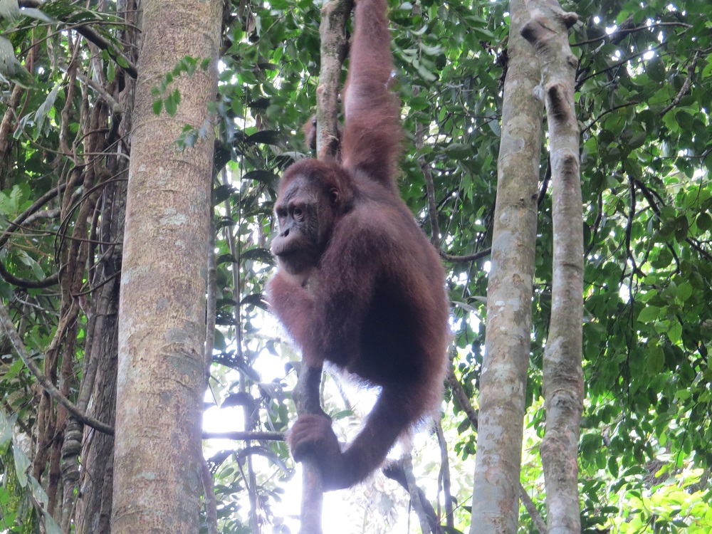 In exciting news, Kedaung was released into the Bukit Tigapuluh jungle in March 2018 after two years of forest school rehabilitation. He soon met up and foraged with previously released female orangutans Dora, Anjeli and Suro. A few days after his release, Kedaung travelled away from the area to avoid some other male orangutans. He spent most of his time 10m and above in the canopy and never came down to the ground. He avoided any contact with the keepers except to take his supplement food which is very positive.